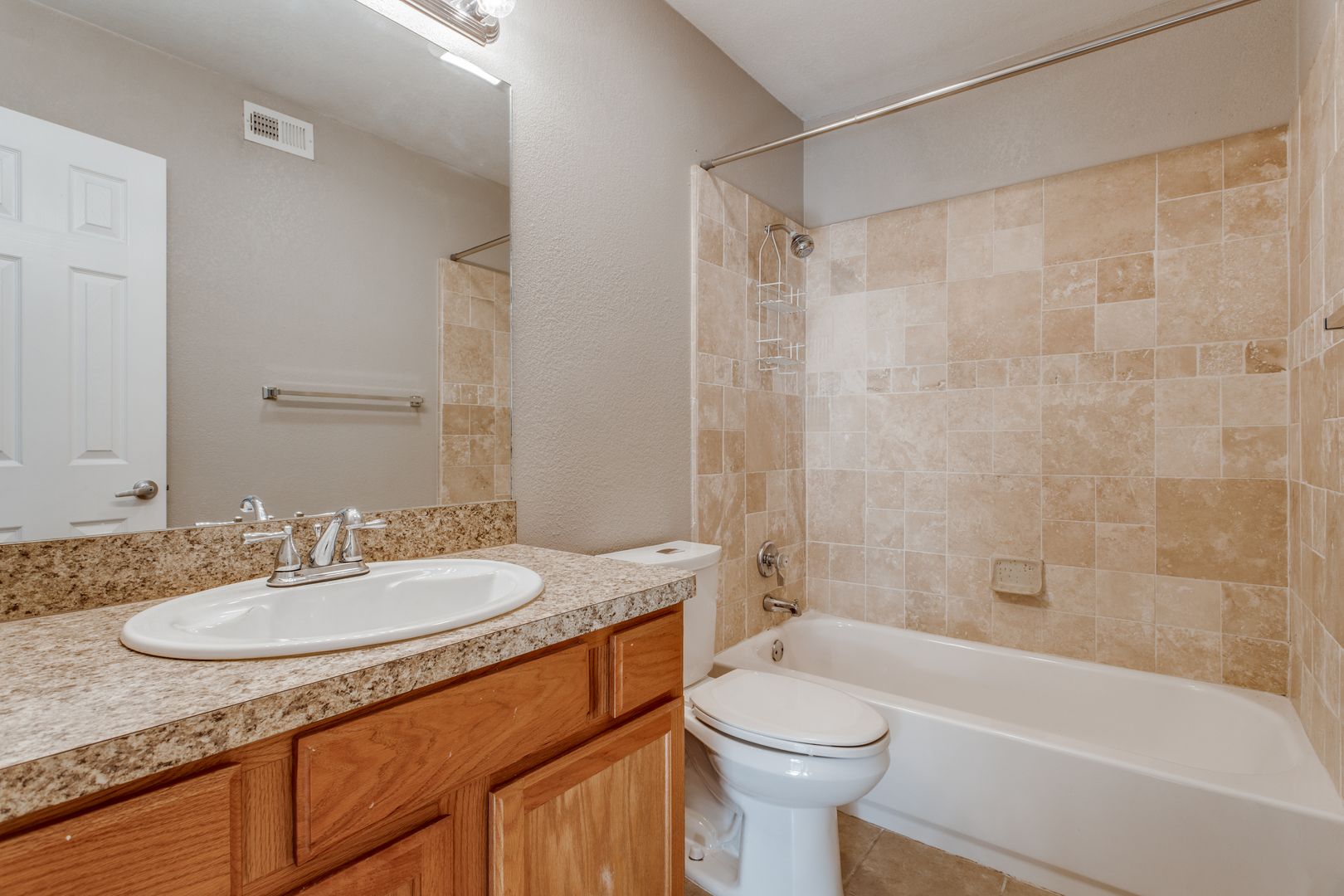 Step inside to find tile flooring throughout, making for a clean and low-maintenance space. A skylight in the master bathroom fills the suite with soft natural light, adding to the open and airy feel. The living room and master bedroom each open to a private patio, where you can unwind and take in the beautiful creek views—a rare touch of nature in the city.